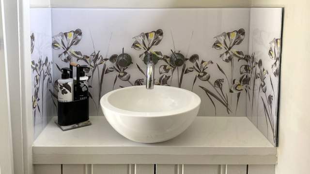 How about this for an easy room refresh, think glass splashback for bathroom sink. It can transform your room easily and cost effectively. Choosing an Emma Britton glass splashback for a small sink is a great way to add an injection of pattern and colour into a family bathroom, ensuite or downstairs loo. The choices for design and colour are endless within Emma’s collections of ready-to-go splashbacks. All of which are custom made to your measurements, and quick to install and easy to maintain.