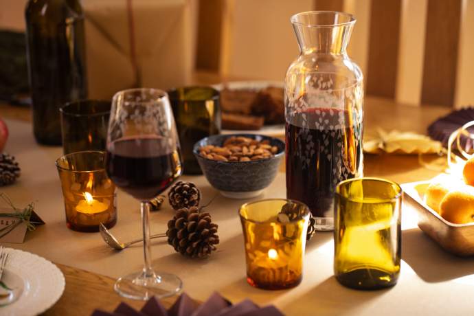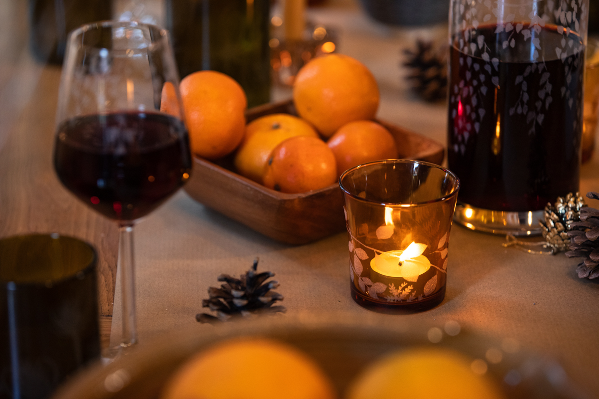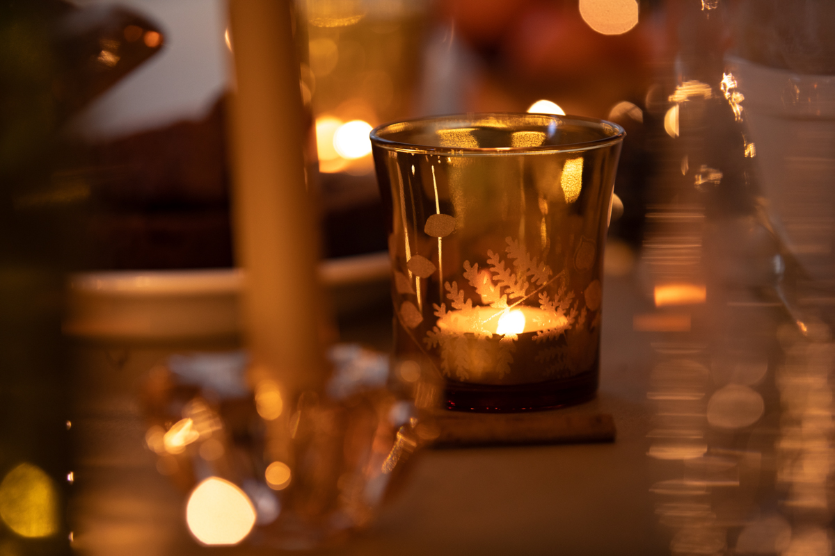 Amber Glass Tea Light Holder, part of the Limited Edition Amber Glassware Collection, inspired by Autumn and designed by Emma Britton. Emma’s first ever tumbler style candle pattern is etched with entwined oak leaves and branches like a forest floor in Autumn, and delicious fig halves. The look of the collection is both rustic and romantic, casting a warm amber light. A great Christmas gift for best friends, as a stocking filler or for Secret Santa gifts.