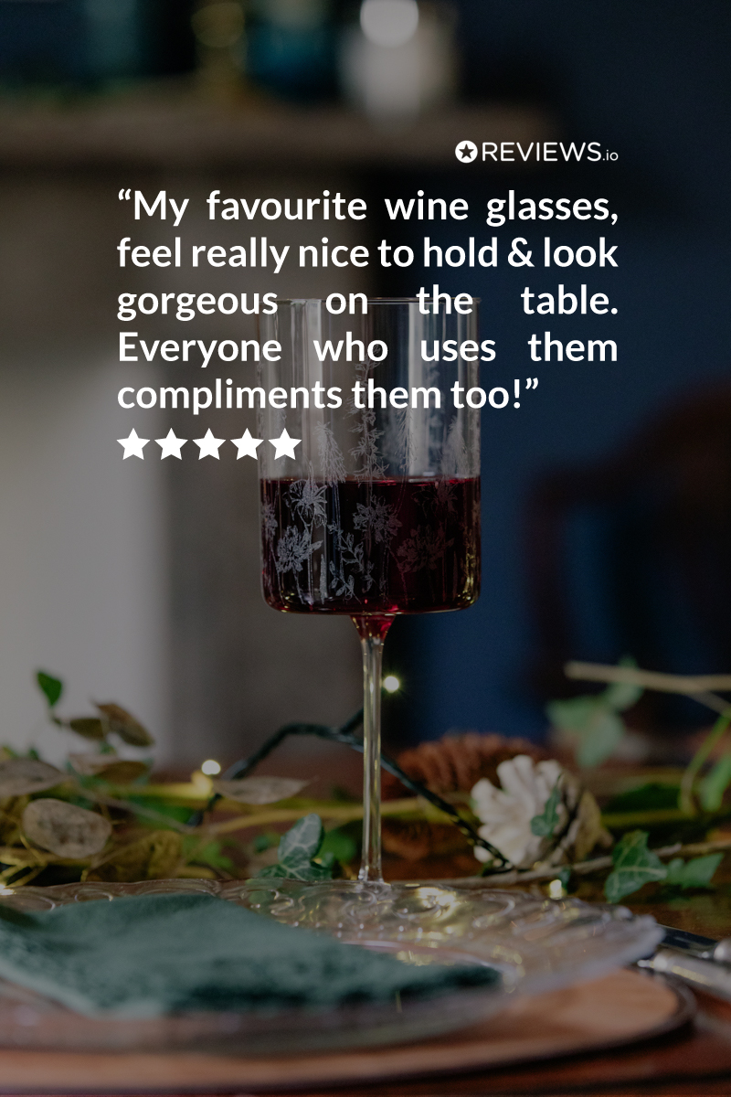 Modern floral, crystal red wine glasses set, lightweight and durable, decorated at the studio with Emma’s popular Exotic Floral pattern. A lovely housewarming gift or present for wine lovers, that you can enjoy when you pop round for a glass of wine! Gorgeous for festive table settings too.