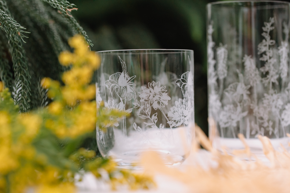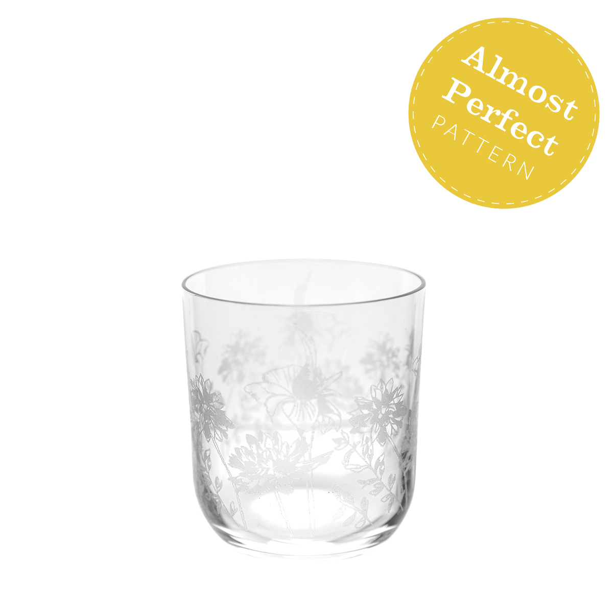 Pretty crystal floral tumbler featuring Emma’s popular Exotic Floral design in etch, decorated at her glassware studio. With a pattern of tropical florals including dahlias, canna lilies and salvia. A contemporary crystal glass that’s refined yet durable for everyday use, with a rounded shape that’s nice to hold.
