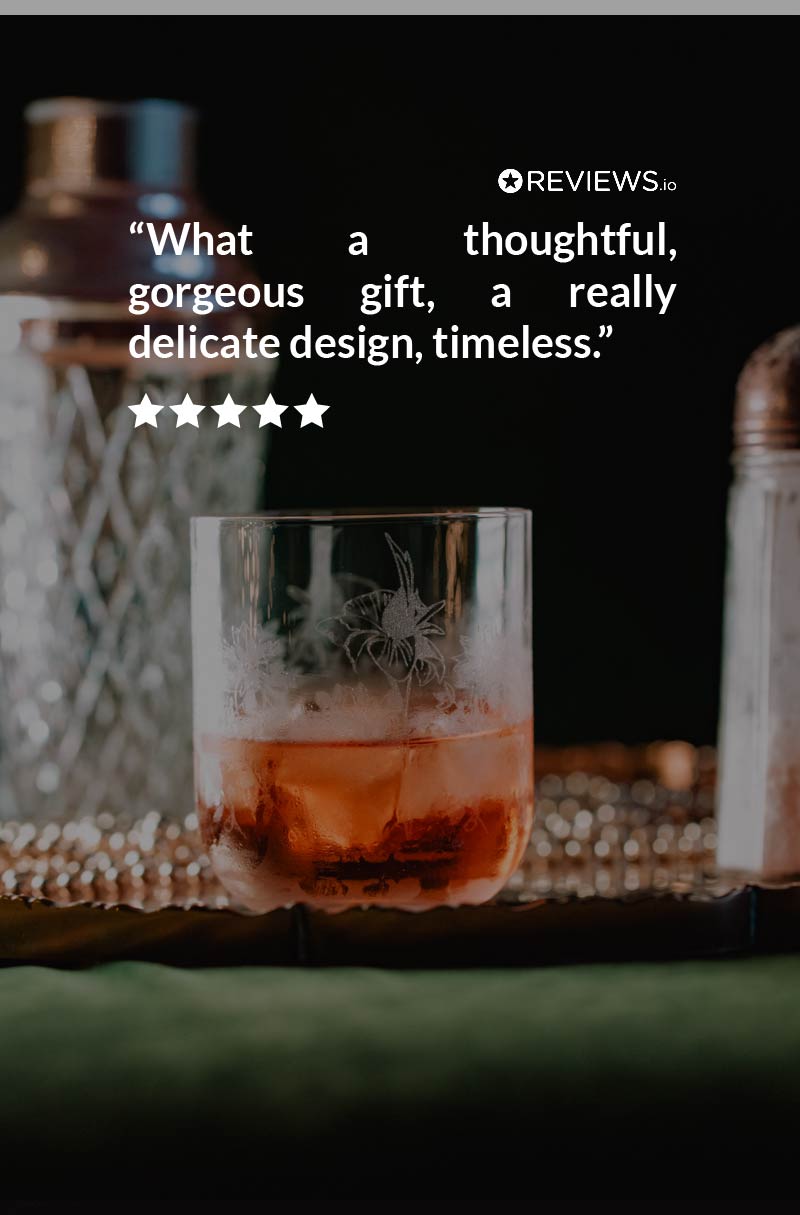 Pretty, etched crystal, floral tumbler featuring Emma’s popular Exotic Floral design, decorated at her studio. Shop this floral tumbler in a set of four and pair with matching Wine Glasses. A lovely gift for flower lovers.