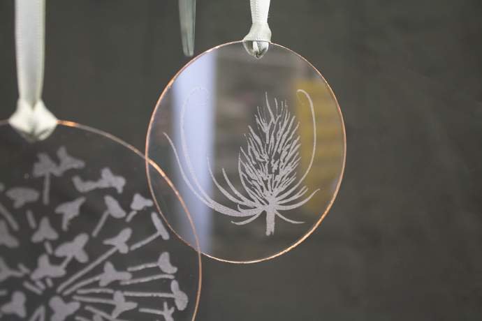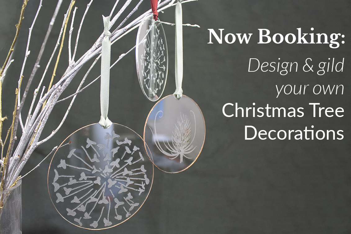 Emma will guide you in techniques for designing a motif for your tree decorations, working from natural, seasonal source materials to inspire. You’ll also gild your two glass decorations in beautiful metallic leaf for an extra-special festive touch. This is a rare chance to have your artwork created in Emma’s signature etch finish.