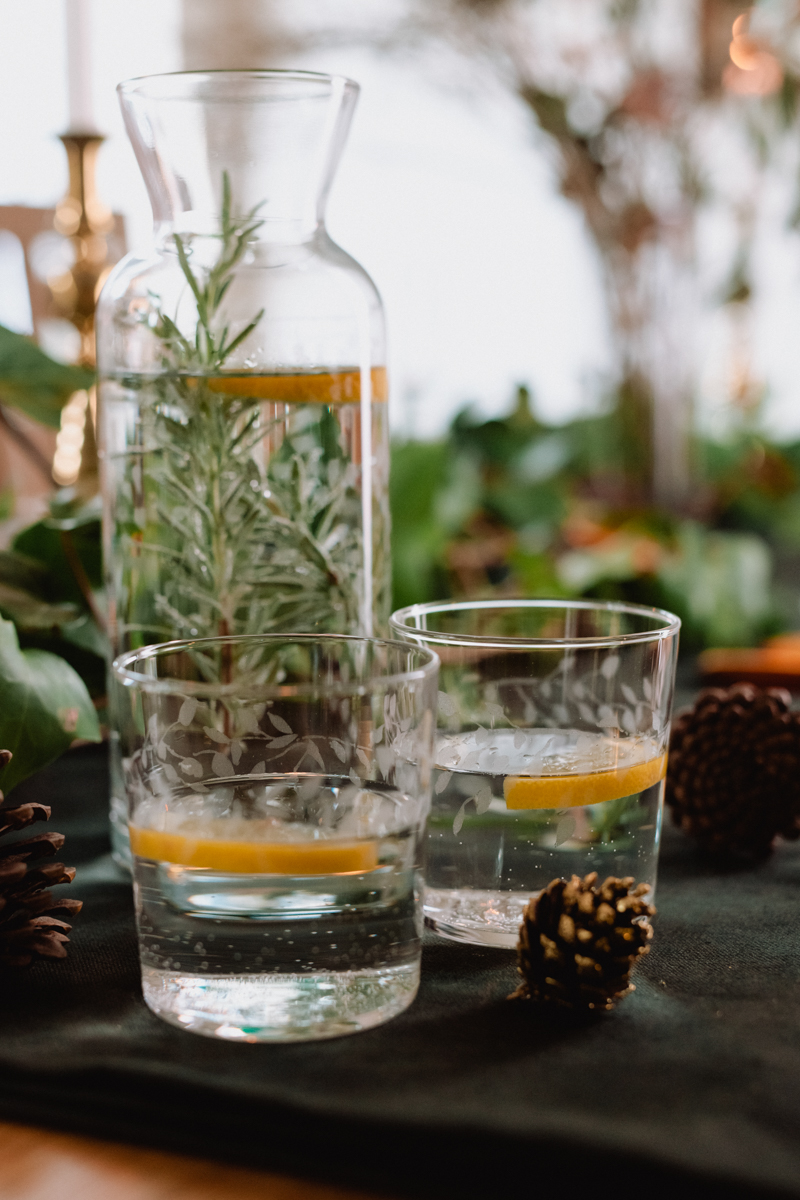 This Carafe and 2 Tumbler Gift Set is made for sharing and features a dainty and dappled silver birch leaf pattern with a mottled finish.