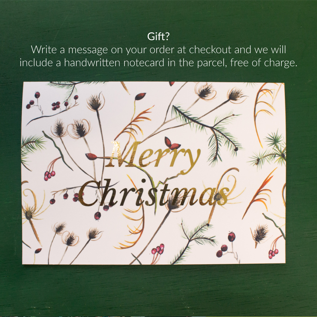 - Gift? Write a message in ‘order notes’ at the checkout and we will include a handwritten note in the parcel, on one of Emma’s signature designed cards.